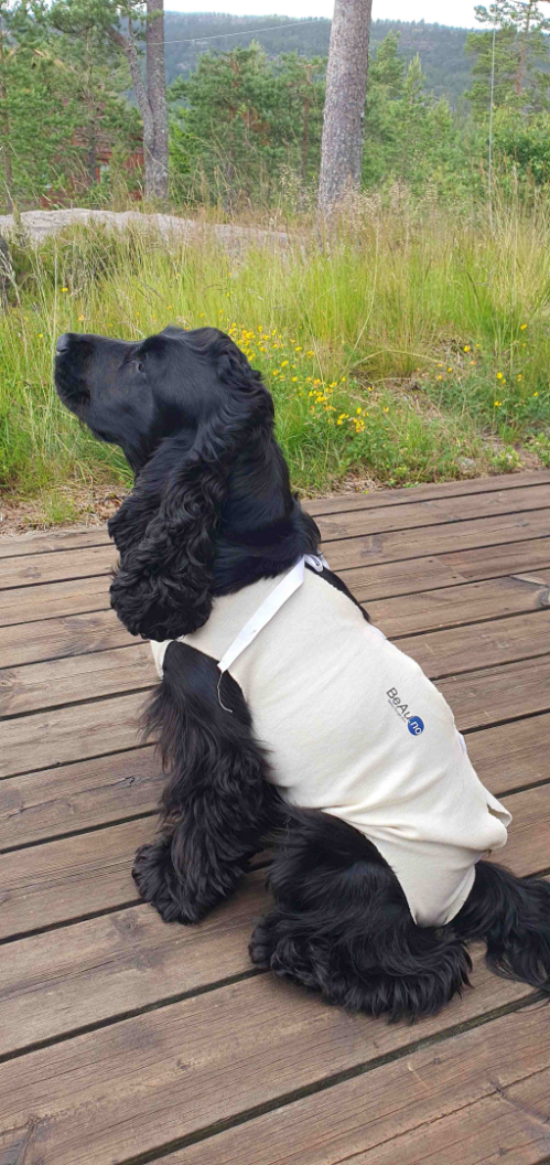 Her er en fornøyd Cocker Spaniel med body fra BeAu